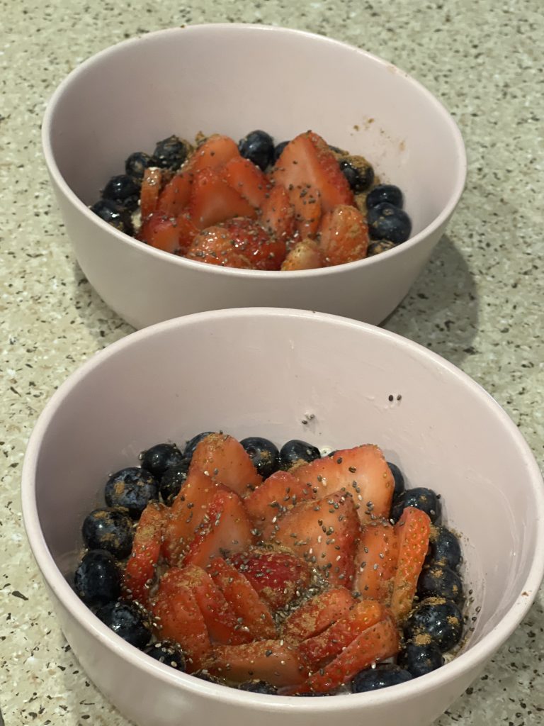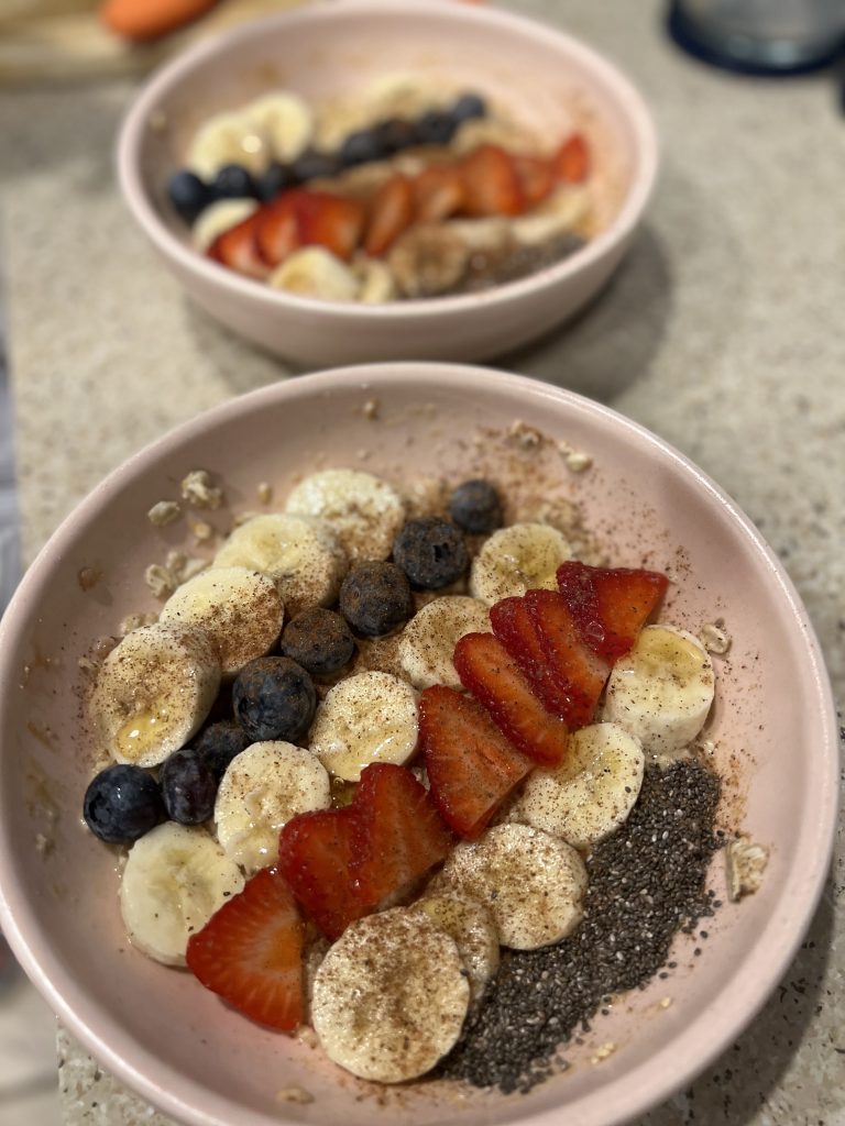 I also prep fresh berries ahead of time and store them in the fridge. This way, I can top my oats according to my taste and nutritional needs for the day.